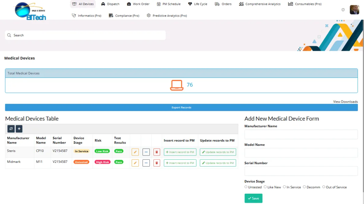 Our inventory management system helps you track all your assets amd biomedical equipment in real-time, providing insights into device availability, usage, and status. It automates maintenance scheduling, helps you manage spare parts, and ensures you’re always prepared for audits. This ultimately improves efficiency, reduces downtime, and helps with cost control.
